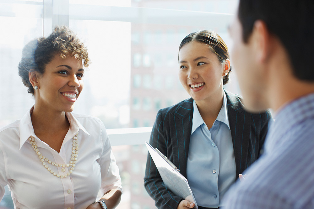 We cut wide and reveal our first hero: a young man in a training session with a group of fellow employees. He raises his hand and the employee leading the session comes over to him.