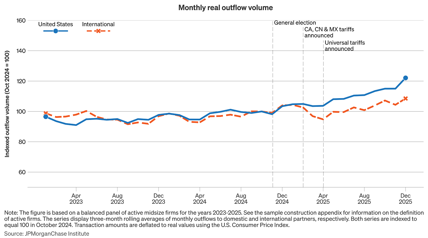 Wheat, Chris, Chi Mac, Ole Agersnap, and Nick Niers. 2025a. Exposure to tariffs for midsize firms by metro area. JPMorganChase Institute. https://www.jpmorganchase.com/content/dam/jpmorganchase/institute/documents/exposure-to-tariffs-for-midsize-firms-by-metro-area.pdf.