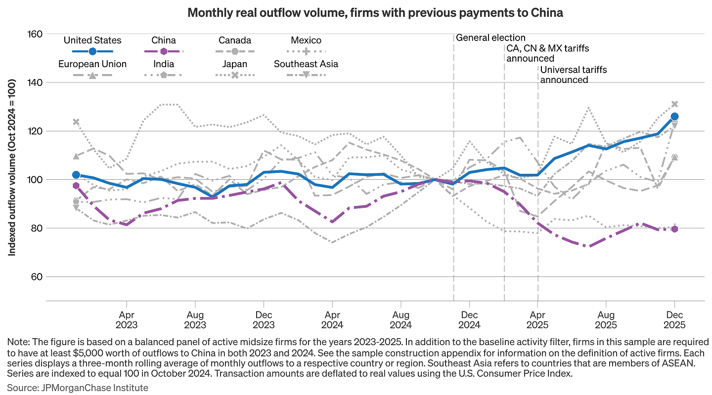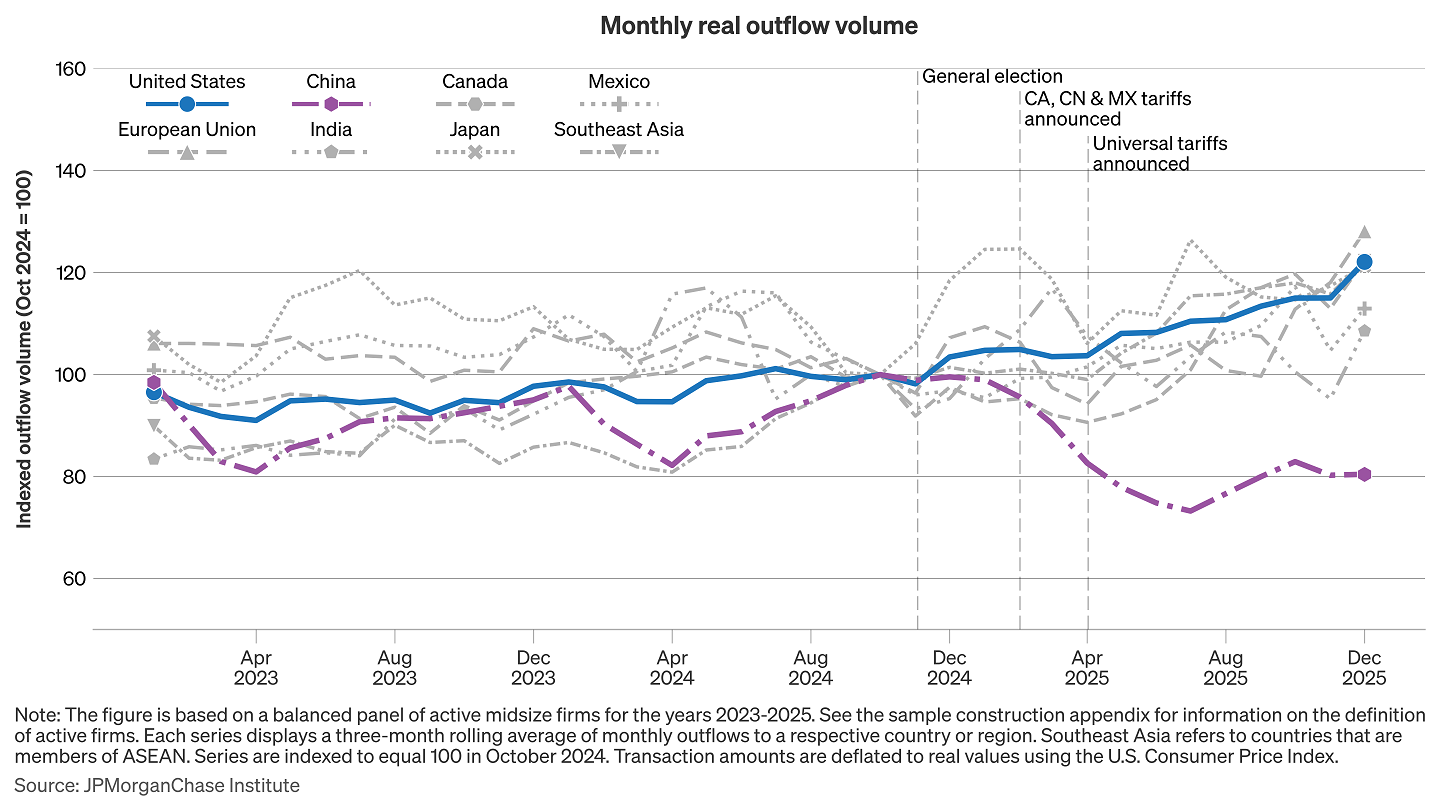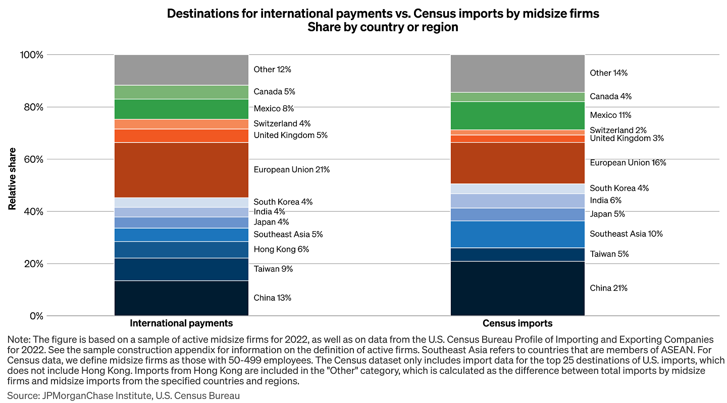 Wheat, Chris, Chi Mac, Ole Agersnap, and Nick Niers. 2025b. Exposure to tariffs for midsize firms by country of origin and industry. JPMorganChase Institute. https://www.jpmorganchase.com/content/dam/jpmorganchase/institute/documents/exposure-to-tariffs-for-midsize-firms-by-country-and-industry.pdf.