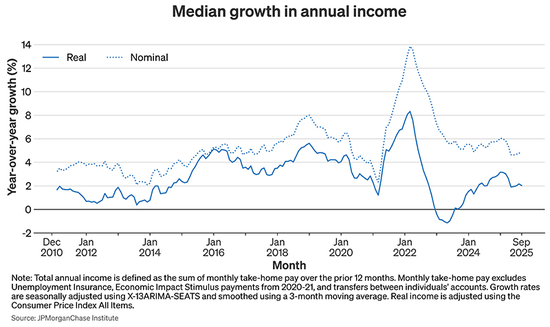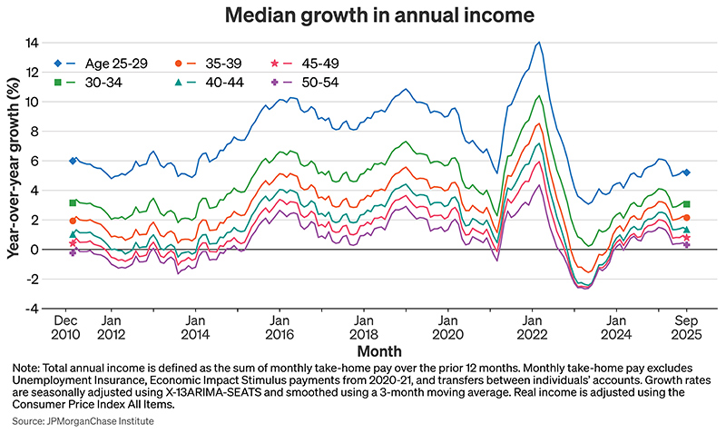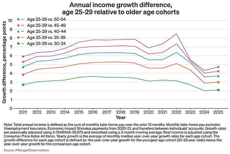 Wheat, Chris, and George Eckerd. 2025. “Real income growth shifts down, especially for the young.” JPMorganChase Institute. https://www.jpmorganchase.com/institute/all-topics/financial-health-wealth-creation/real-income-growth-shifts-down-especially-for-the-young