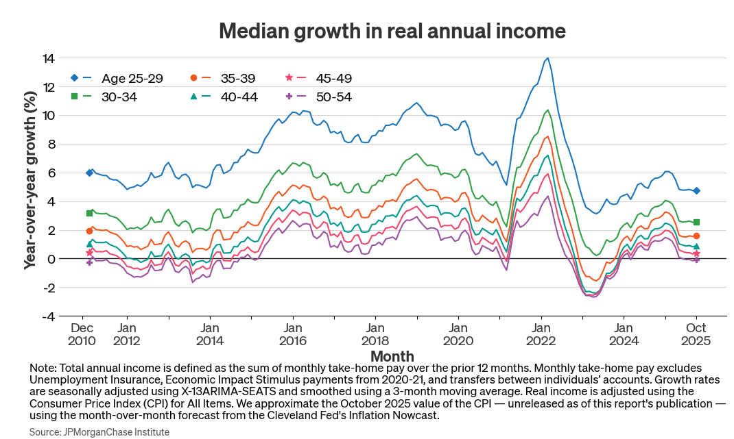 Wheat, Chris, and George Eckerd. 2025a. “Real income growth shifts down, especially for the young.” JPMorganChase Institute. https://www.jpmorganchase.com/institute/all-topics/financial-health-wealth-creation/real-income-growth-shifts-down-especially-for-the-young