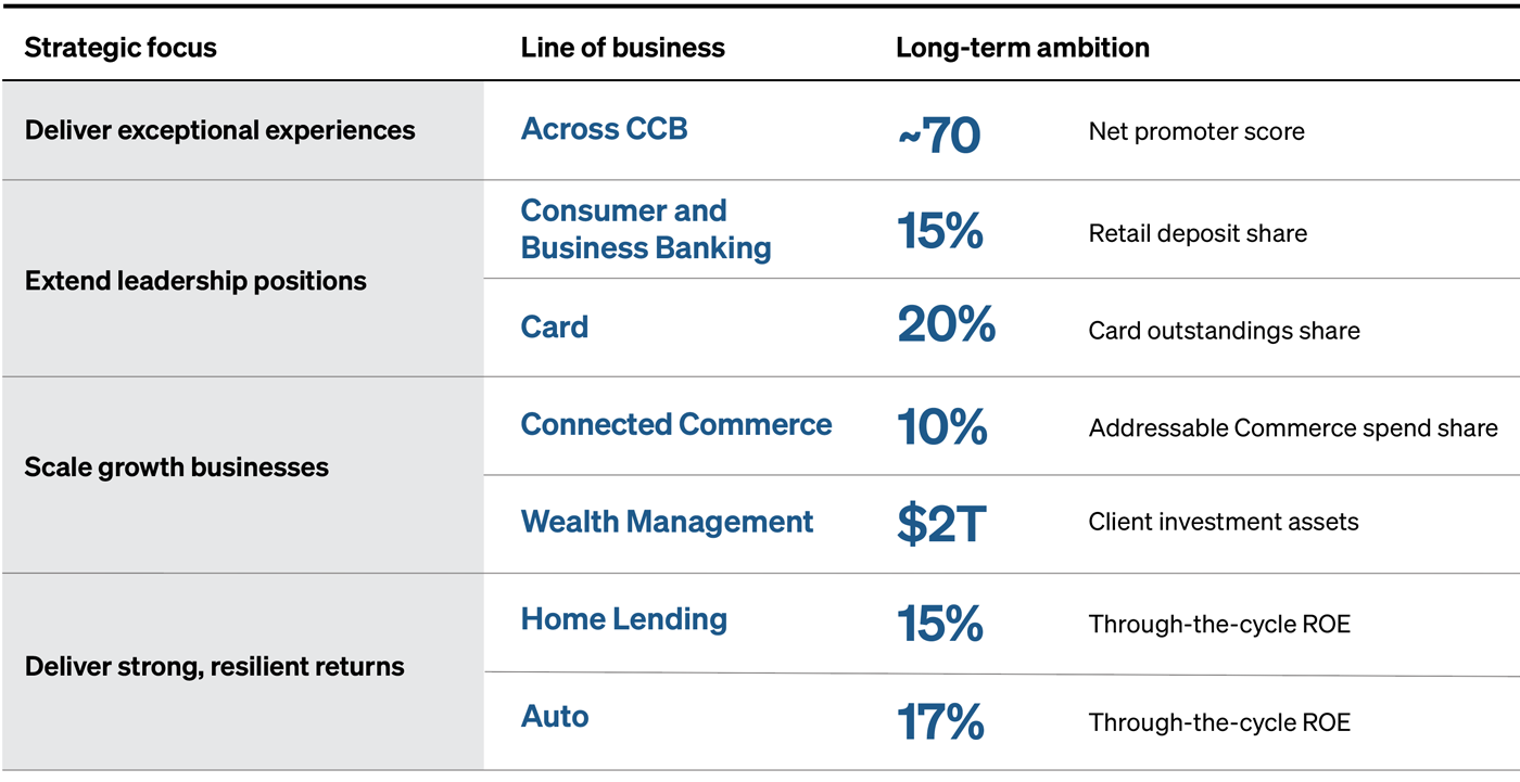 AI transformation: AI adoption is growing rapidly. This is a massive opportunity, and we see benefits everywhere. We delivered a nearly 60% increase in value from AI and machine learning (ML) year-over-year and are supercharging teams’ productivity. Operations is at the tip of the spear, where we announced an objective to achieve more than 40% gross productivity efficiency by 2030, and we’re already on track to outperform. There are similar opportunities across CCB. We have mature use cases leveraging predictive AI/ML in credit, operations and fraud, and we are expanding this with an increased focus on agentic capabilities in coding, marketing, sales optimization, pricing and personalization. Enabling this, our data is in the cloud, already fit for purpose and readable by humans and predictive AI — and more of our important data is streaming real-time for consumption by generative AI.