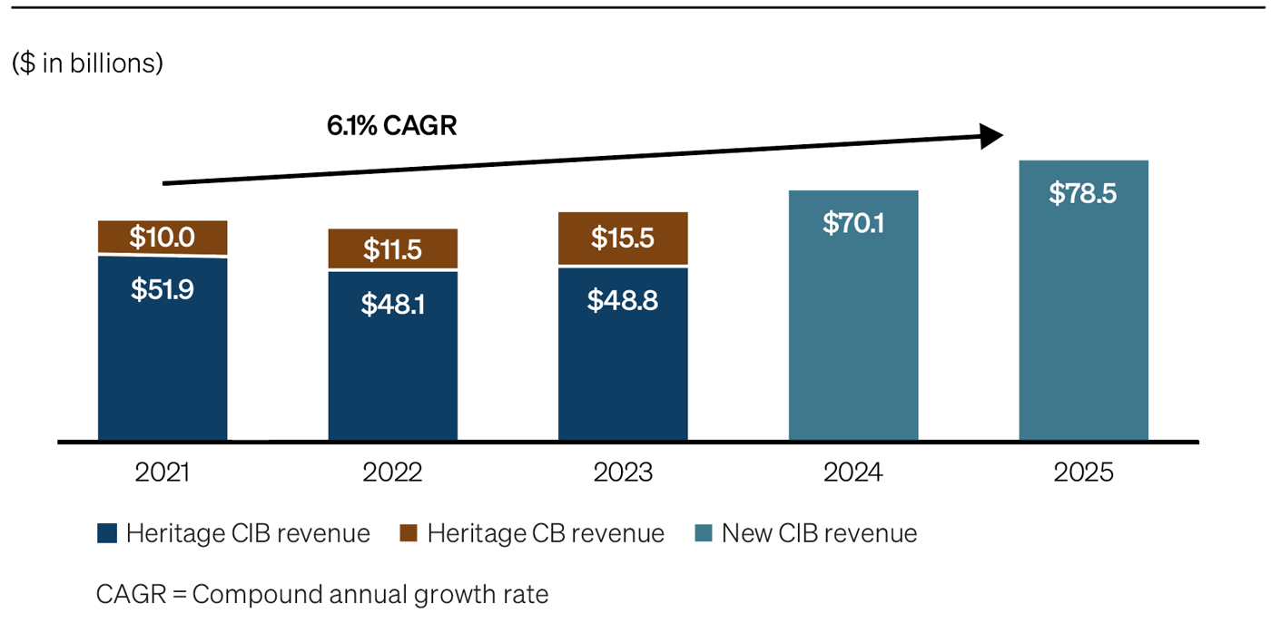 The early 2024 integration of Commercial Banking (CB) with the Corporate & Investment Bank has proved to be a defining strategic move, creating an engine for growth and a scaled platform to serve clients of all sizes. Since the merger, revenue has grown at a compound annual rate of 10%.1