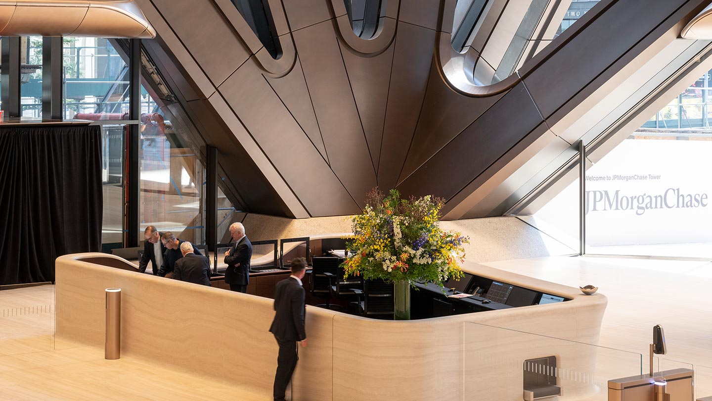 Footage of multiple spaces inside JPMorganChase’s global headquarters.