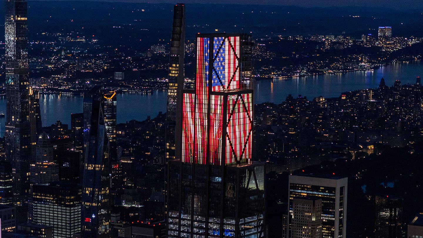 JPMorganChase illuminated the 1,388-foot building’s crown with the American flag to celebrate Independence Day.